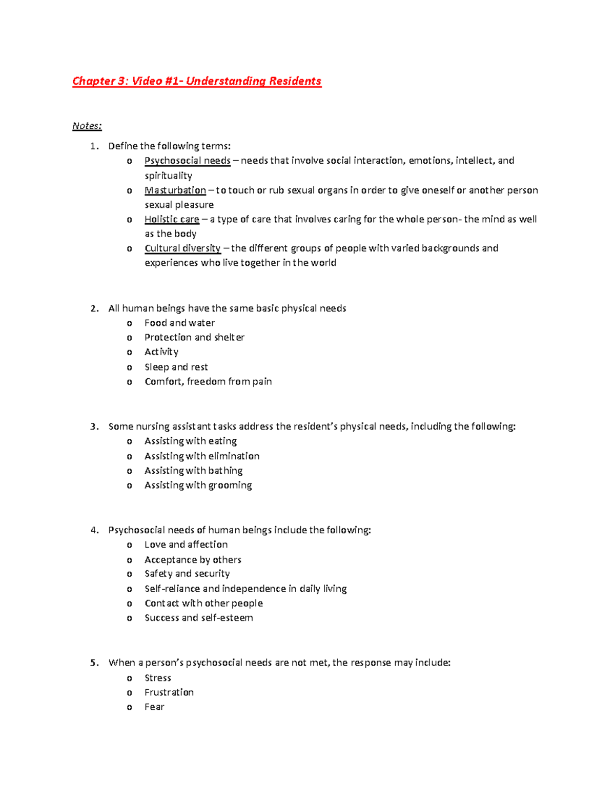 Cna Chap 3 Video Part 1 2 Chapter 3 Video 1 Understanding Residents Notes Define The Studocu