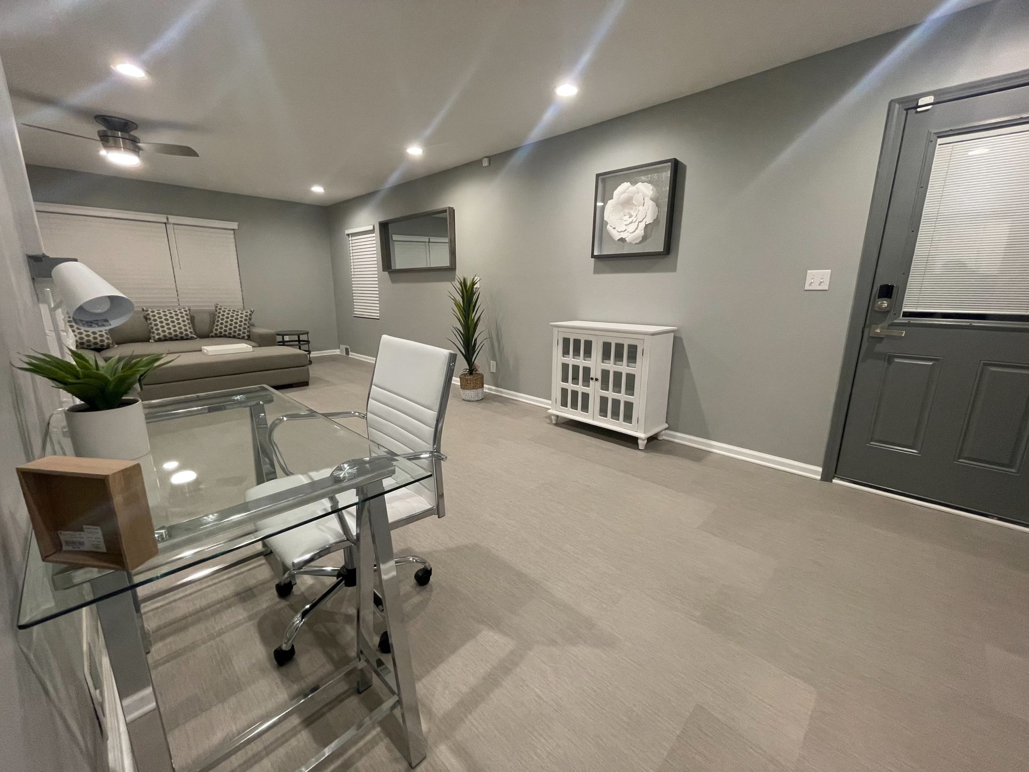 Modern English Farmhouse Basement Living Rooms Basement Design Mudroom Design